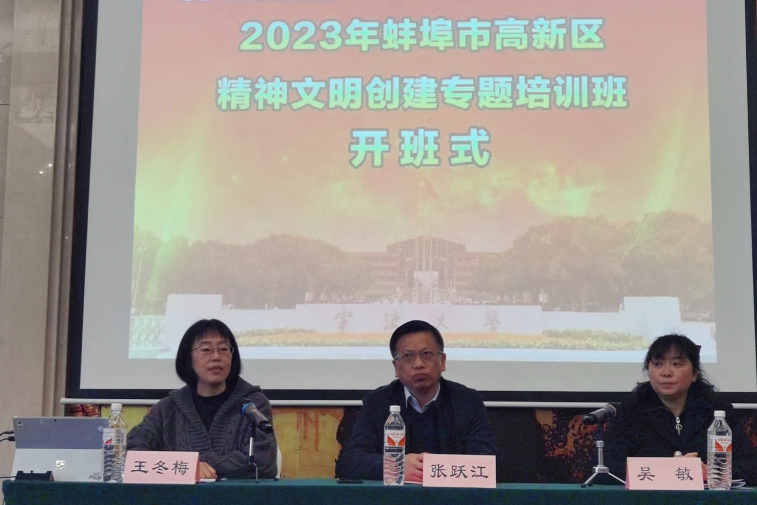 3月27下午,由蚌埠市高新区文明办主办的2023年蚌埠市高新区精神文明建设专题培训班在宁波大学宾馆多功能厅举行开班仪式。