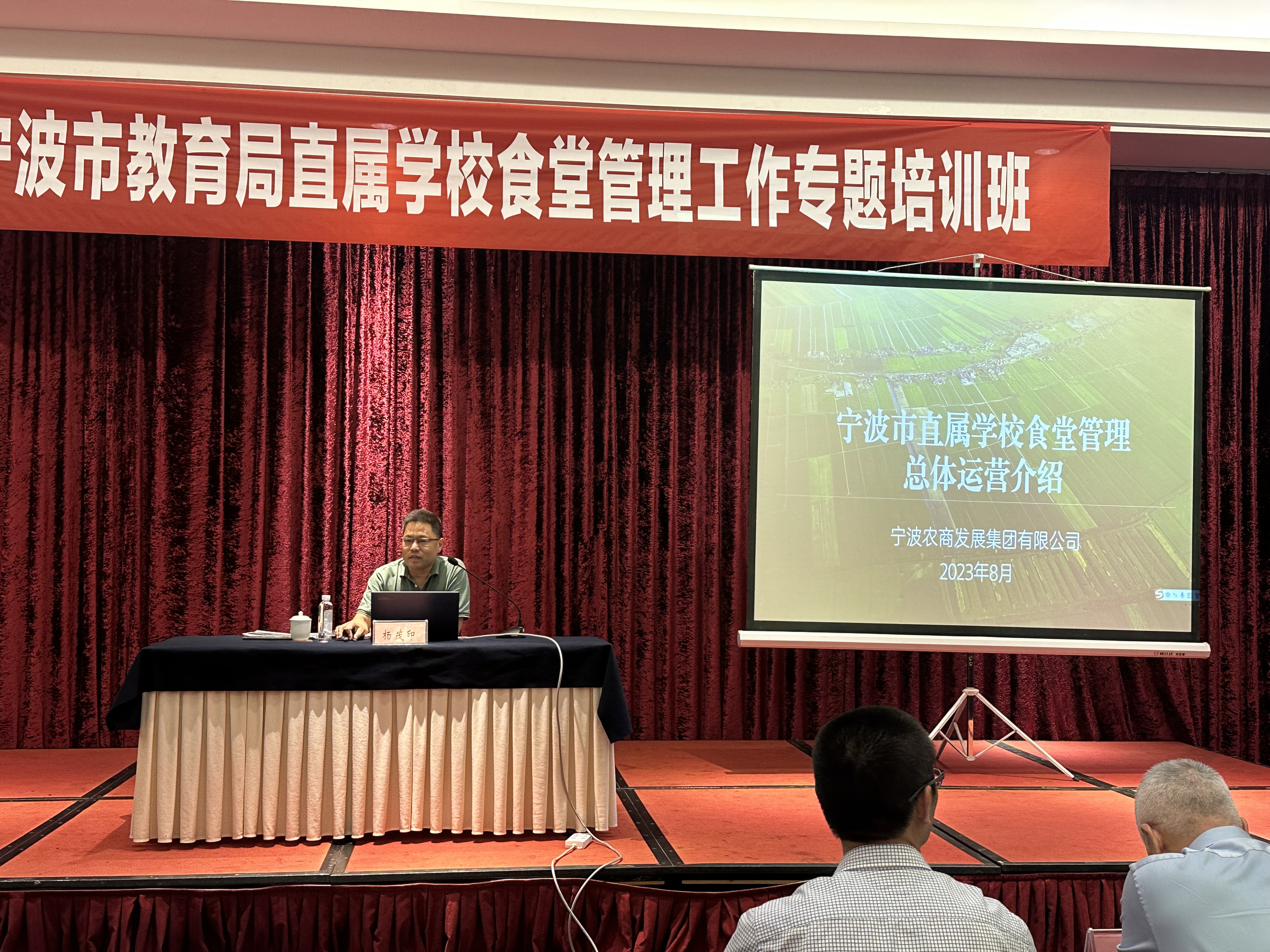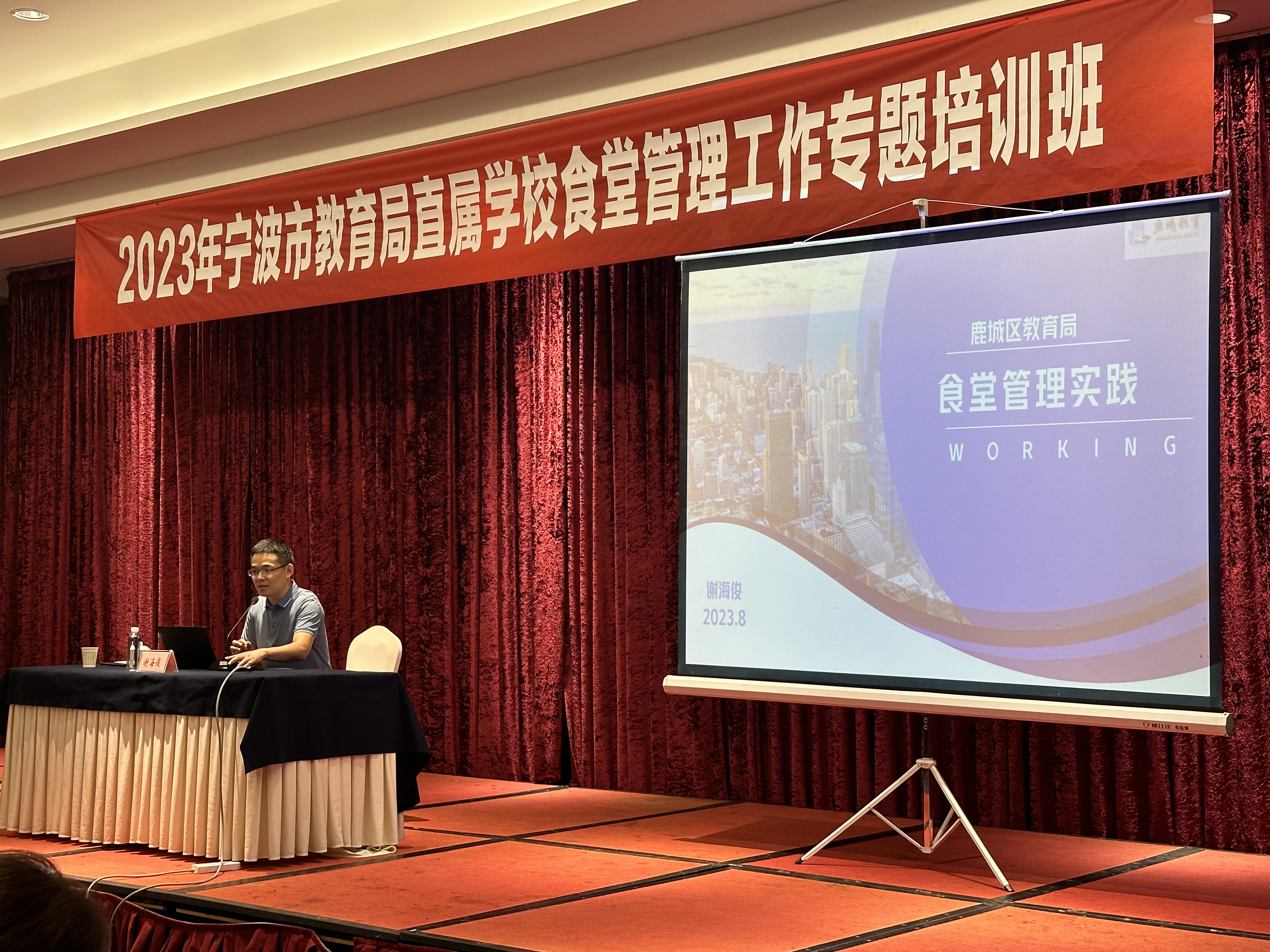 本次培训特别邀请宁波市教育局计财处二级调研员马军作政策解读,温州市鹿城区教育局计财科科长谢海俊作食堂管理实践分享,宁波农商发展集团有限公司总经理杨茂印作直属学校食堂管理总体运营情况介绍。