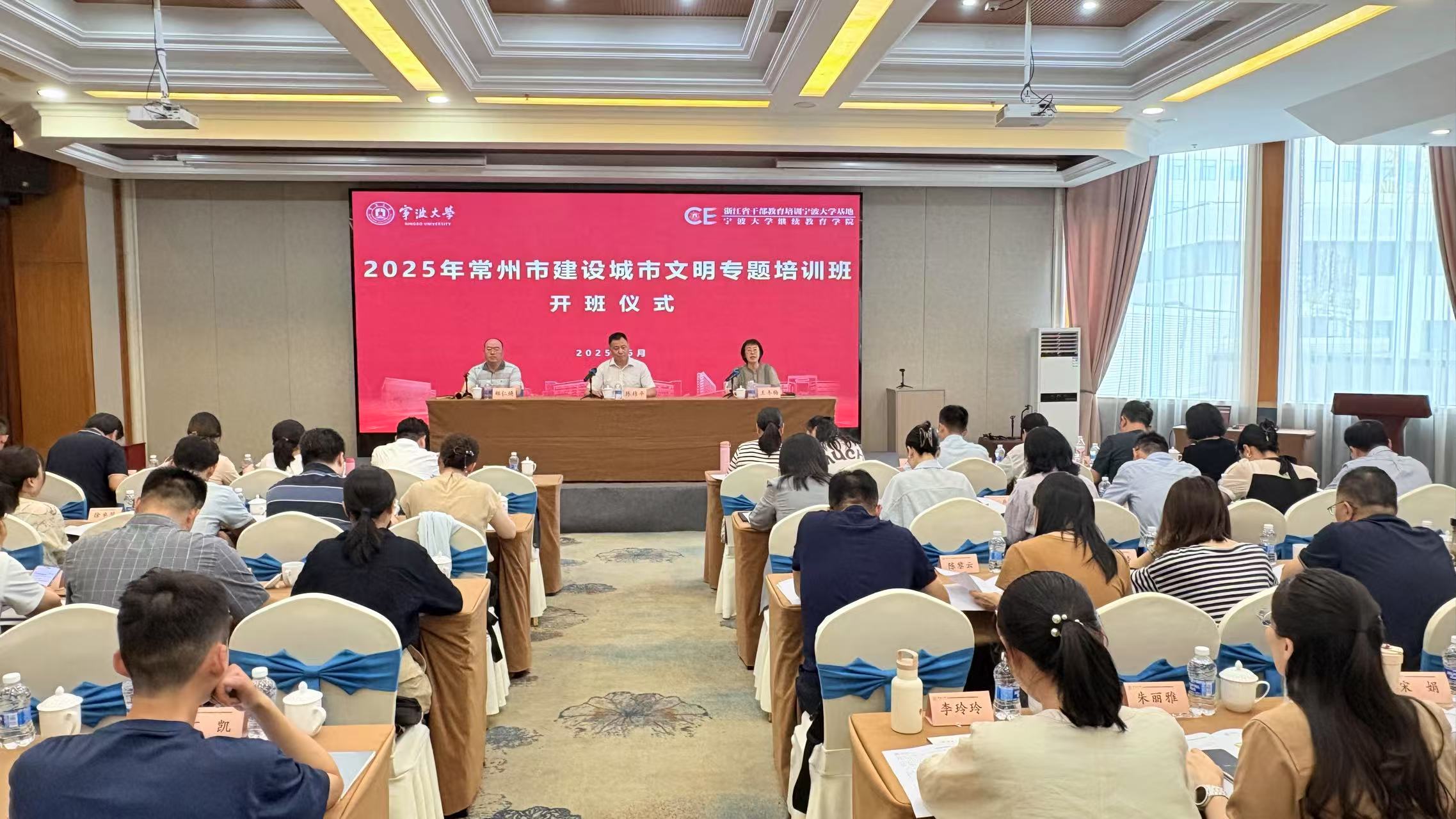 6月23日下午,由宁波大学继续教育学院承办的“2025年常州市建设城市文明专题培训班”顺利开班。开班仪式上,学院党总支书记王冬梅代表学校致欢迎词,常州市委宣传部二级调研员陈结平作开班动员讲话。