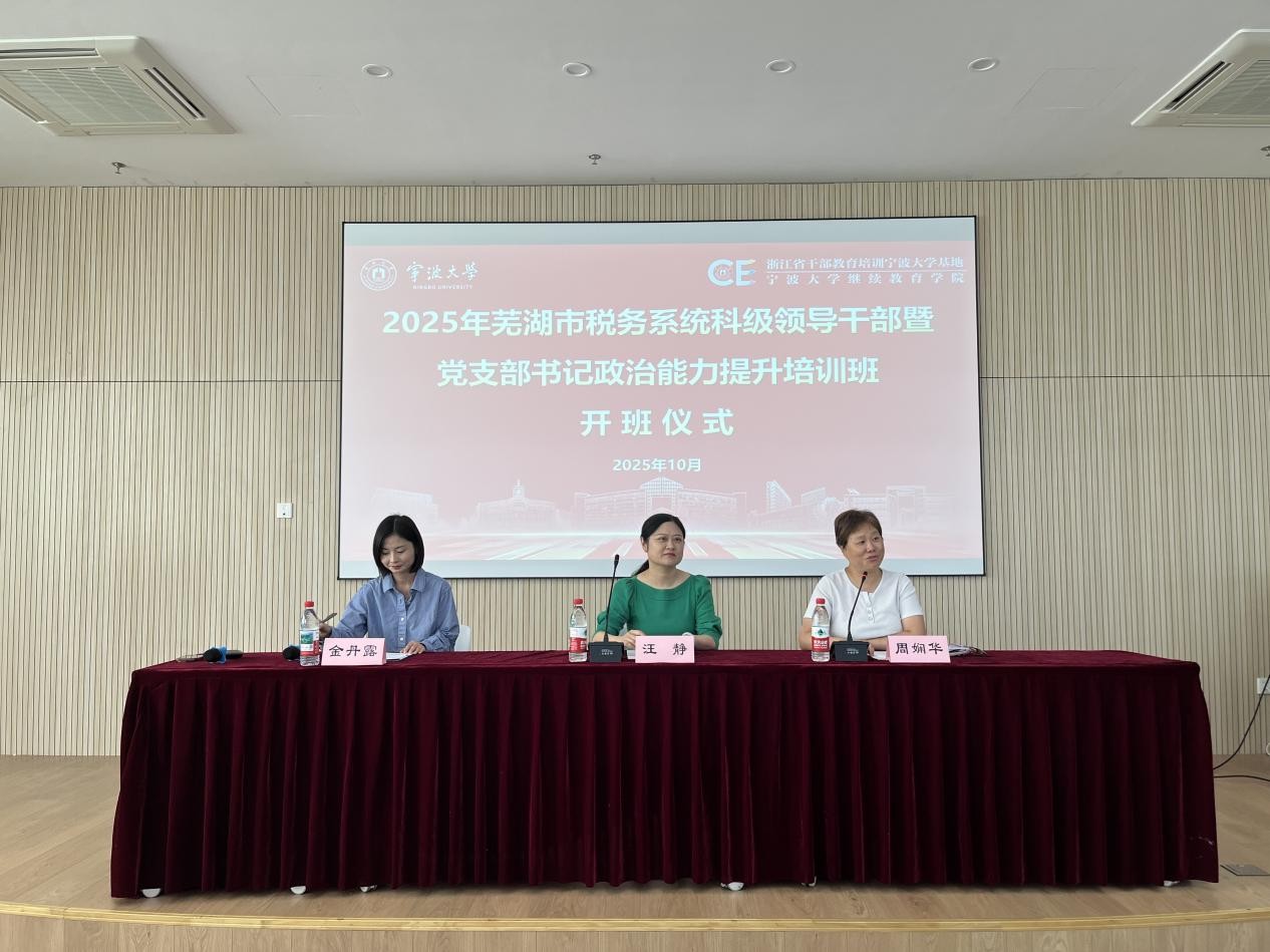 10月13日上午,由宁波大学继续教育学院承办的“2025年芜湖市税务系统科级领导干部暨党支部书记政治能力提升培训班”开班式在宁波大学隆重举行。宁波大学继续教育学院副院长周娴华出席仪式并致辞,芜湖市税务局组织人事科科长、一级主办汪静作开班动员讲话。芜湖市税务系统50名干部参加培训。
