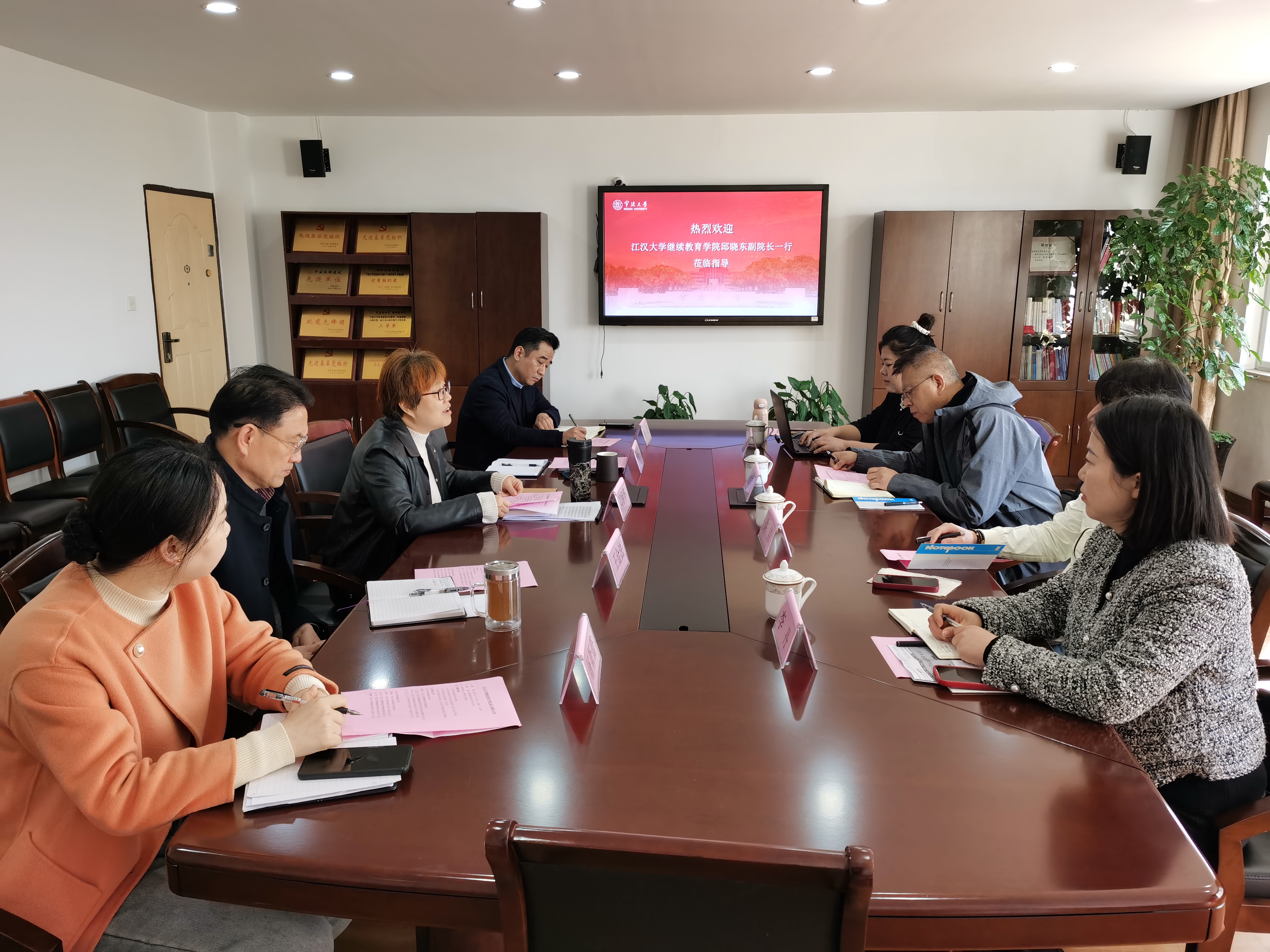 邱晓东副院长对宁波大学继续教育学院的热情接待表示感谢,并介绍了江汉大学继续教育学院的基本情况和发展动态。他表示,浙江作为“新时代全面展示中国特色社会主义制度优越性的重要窗口”,宁波又作为浙江建设“重要窗口”的模范生,有很多先进的理念值得学习,希望能够与宁波大学继续教育学院开展合作,共同推动继续教育事业的发展。