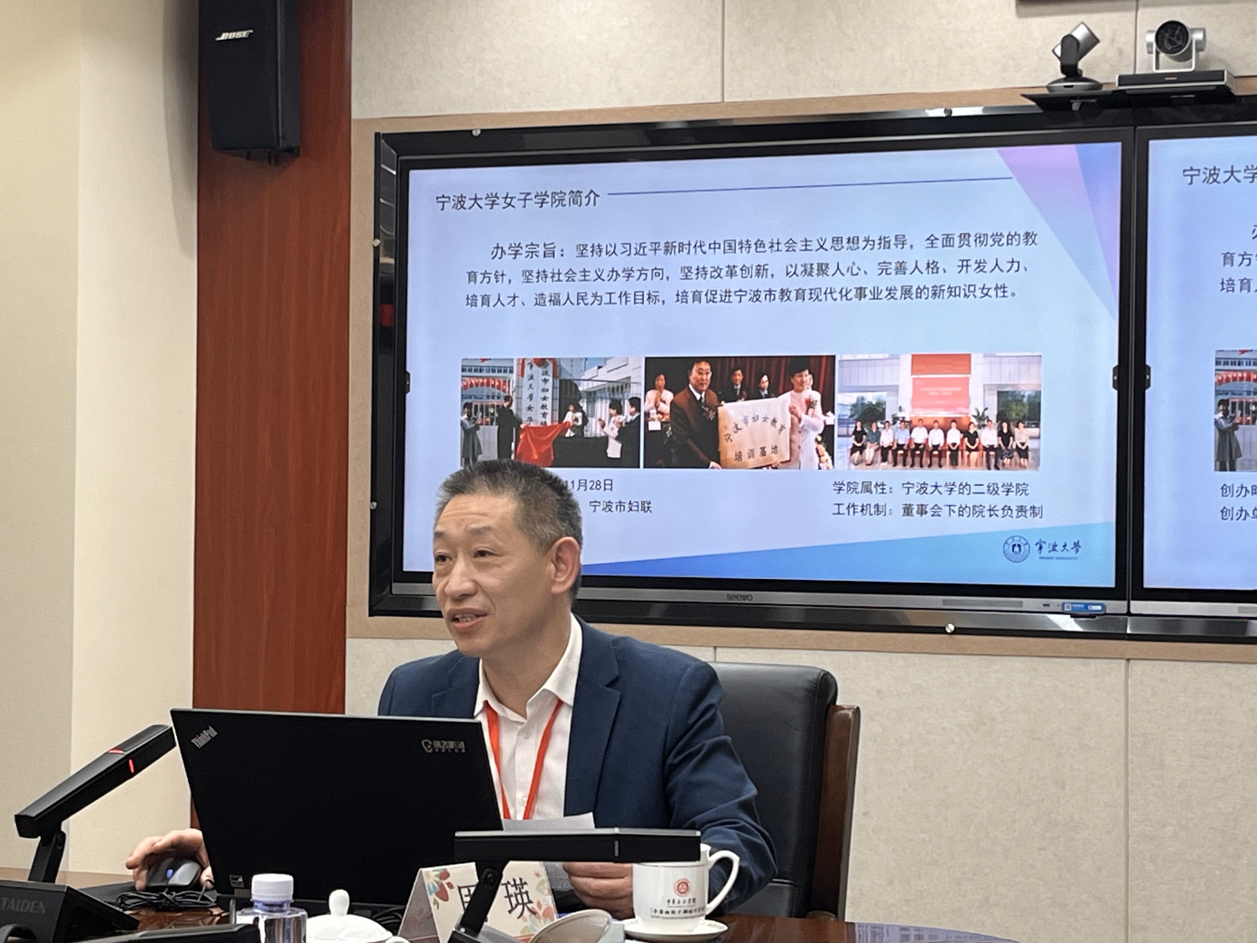 当天下午,蔡院长作为中国高等女子院校联盟理事,参加了中国女子高等院校联盟中国特色女子高校高质量发展论坛,并做了《守正创新 踔厉奋发--宁波大学女子学院高质量发展的探究》的主旨报告。