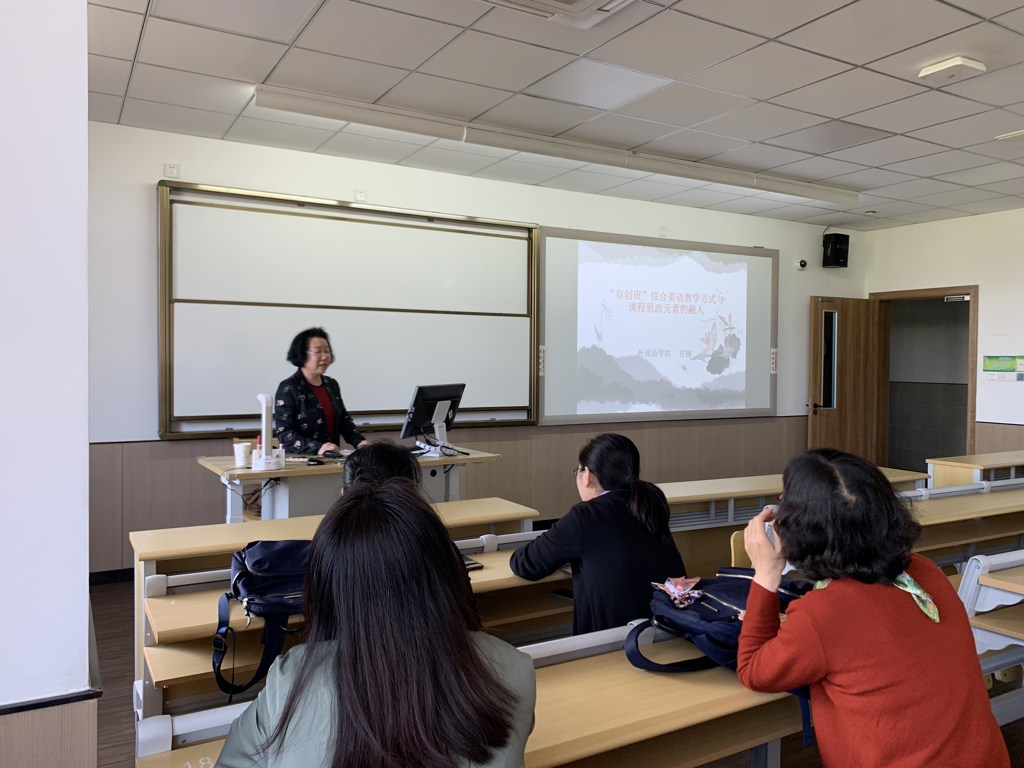 4月21日下午,我院邀请外国语学院宫丽副教授为我校“高技能创新创业班”各承办学院的任课教师、教务管理老师作了题为《“双创班”综合英语教学方式与课程思政元素的融入》的讲座,来自我校14个承办学院的近60位老师参加了本次讲座。